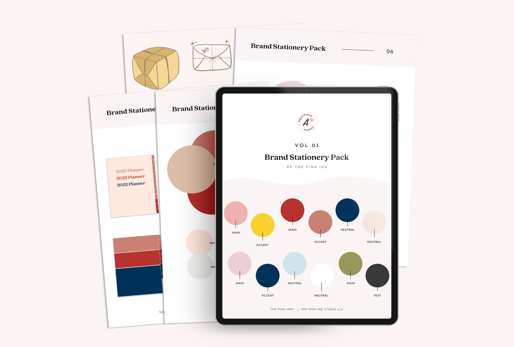 Select the Brand Stationery Pack that is most appealing to you and your audience. Inside, you’ll find 6 different color palette options and a guide on how to use each to build the best brand possible.